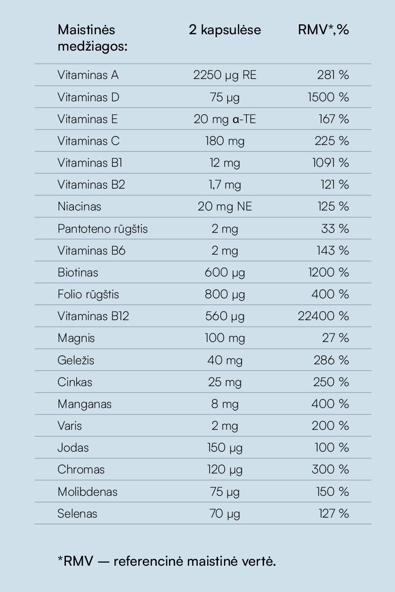 Tai unikalus svarbiausių vitaminų ir mineralų su geležimi kompleksas, kuris pilnai patenkina organizmo poreikius po skrandžio rezekcijos ar apylankos operacijų.
